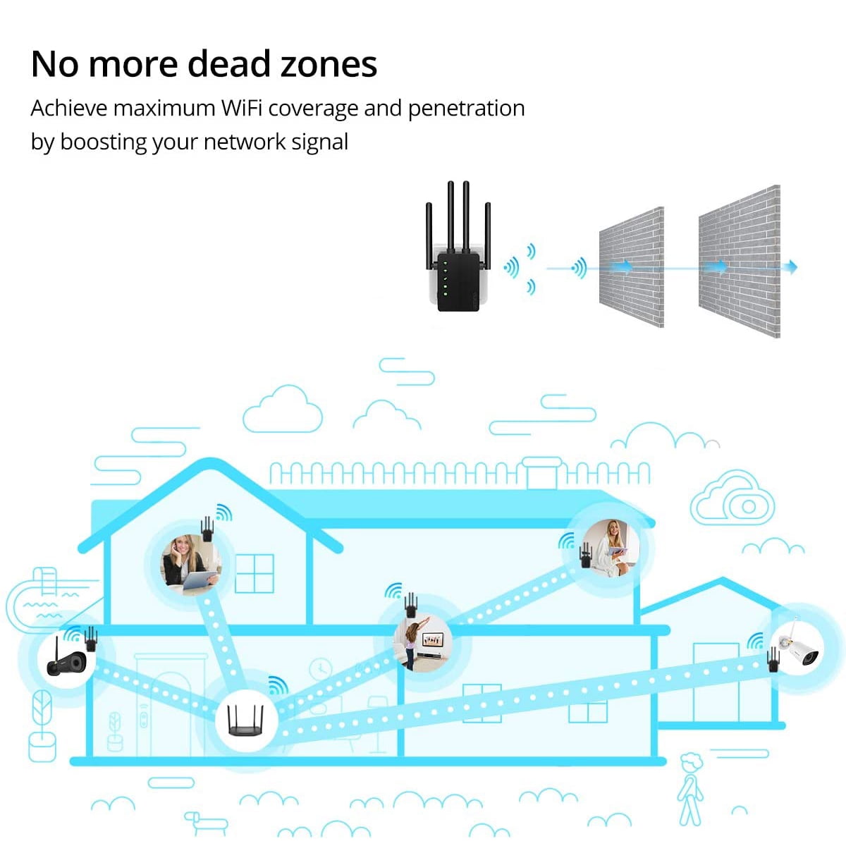 Pokuj Wifi Range Extender 1200mbps Signal Booster Repeater Cover Up To 2500 Sq Ft 2 4 5ghz Dual Band Wifi Extender 4 Antennas 360 Full Coverage Wireless Internet Amplifier For Smart Home Devices Walmart Com